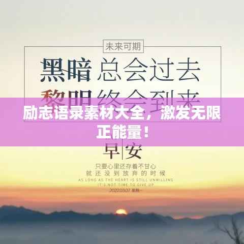 是一份励志语录素材全集,希望能为大家带来正能量和奋进的动力,人生充满挑战与机遇,让我们在追求梦想的路上,不忘初心,砥砺前行,铭记这些励志语录,让它们成为我们前行的动力,助力我们战胜困难,实现人生价值。