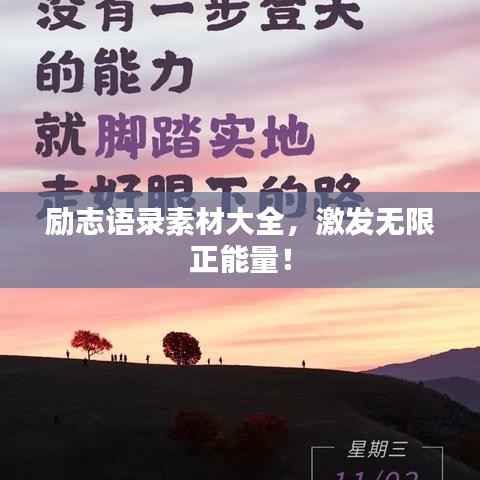 人生充满挑战与机遇,我们需要励志的力量来鼓舞自己不断前行,励志语录作为一种精神食粮,时刻激励着我们追求梦想,战胜困难,以下是一份励志语录素材全集,希望能为大家带来正能量和奋进的动力。