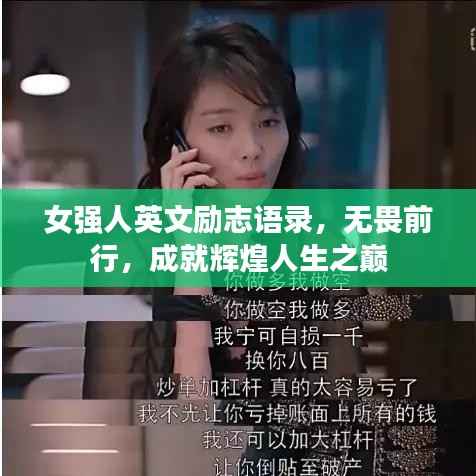 在当代社会,越来越多的女性展现出坚韧不拔、勇往直前的精神风貌,她们以坚定的信念和不懈的努力,在各个领域取得了非凡的成就,这些女强人以其独特的魅力和智慧,成为了众多人心中的榜样,在这篇文章中,我们将探讨一些女强人英文励志语录,以期激发更多女性追求梦想、创造辉煌人生的勇气与力量。