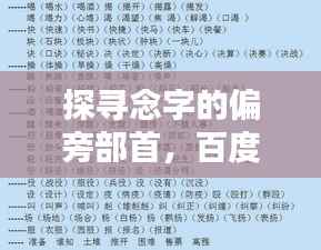 当我们遇到一个汉字的构造疑问,念的偏旁是什么”,我们常常会选择向搜索引擎求助,而百度,作为全球最大的中文搜索引擎之一,无疑是我们的首选,本文将带您一起,通过百度探寻“念的偏旁是什么”。