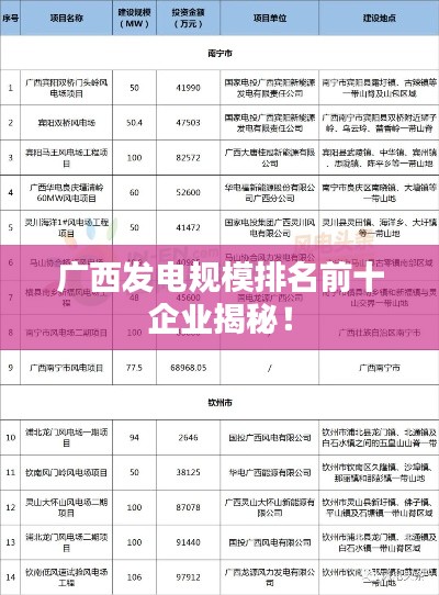 广西作为我国的重要能源基地之一,其发电规模在全国具有举足轻重的地位,本文将为您详细介绍广西发电规模排名前十名的相关信息。