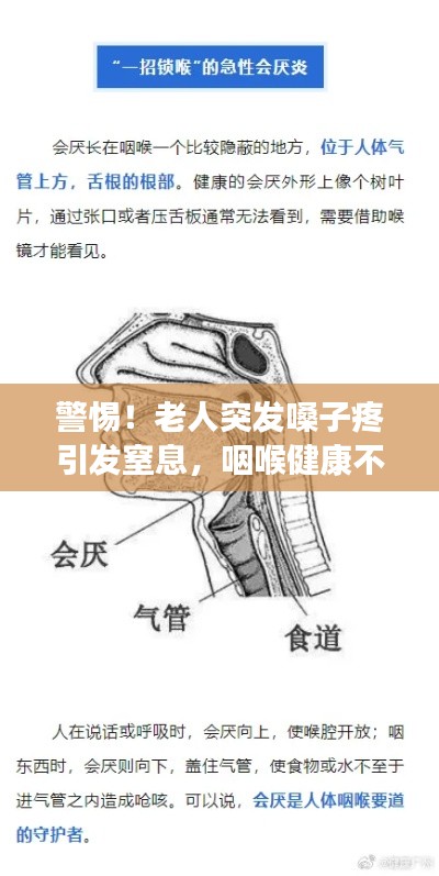 随着人口老龄化趋势的加剧,老年人的健康问题日益受到社会关注,老人嗓子疼突发窒息的情况时有发生,这种情况不仅危及老人的生命安全,也提醒我们关注老年人的咽喉健康,本文将探讨老人嗓子疼突发窒息的原因、应对措施以及预防策略,以期提高公众对老年人咽喉健康的重视程度。