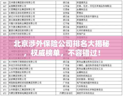 随着全球化的不断发展,涉外保险业务在中国各大城市逐渐崭露头角,北京作为中国的首都和经济中心,其涉外保险业务尤为突出,本文将探讨北京的涉外保险公司排名,帮助企业和个人在选择保险公司时做出明智的决策。