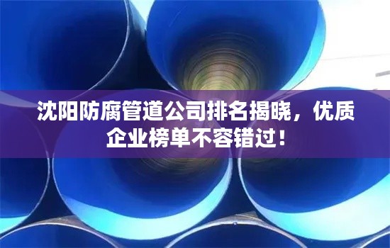 沈阳地区的防腐管道公司在市场上表现出色,拥有较高的知名度和竞争力,无论是对于客户还是对于行业来说,了解这些公司的实力和排名都具有一定的参考价值,希望通过本文的介绍,能够帮助您更好地了解沈阳地区的防腐管道公司。