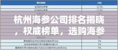 杭州,这座美丽的城市不仅是旅游胜地,也是商业繁荣之地,在众多行业中,海参市场近年来在杭州蓬勃发展,涌现出了一批优秀的海参公司,本文将为您介绍杭州海参公司的排名,带您了解这些企业的风采。