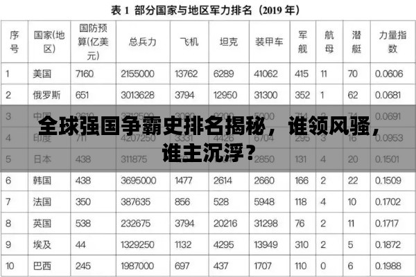 转载请注明来自安防监控安装,本文标题:《全球强国争霸史排名揭秘,谁领风骚,谁主沉浮?》