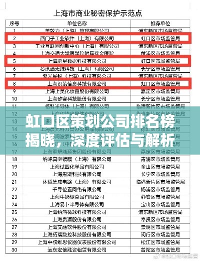 转载请注明来自安防监控安装,本文标题:《虹口区策划公司排名榜揭晓,深度评估与解析,权威排名一网打尽!》
