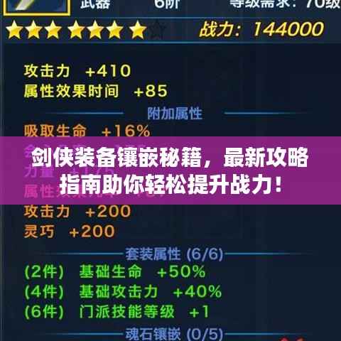 在剑侠世界中,装备镶嵌是提高角色战斗力的关键手段之一,随着游戏版本的更新,新的镶嵌方法和策略也应运而生,本文将为大家带来最新的剑侠装备镶嵌攻略,帮助大家提升角色实力,更好地享受游戏乐趣。
