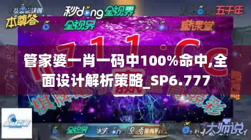 转载请注明来自安防监控安装,本文标题:《管家婆一肖一码中100%命中,全面设计解析策略_SP6.777》