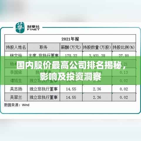 随着中国经济的蓬勃发展,股市成为众多投资者关注的焦点,本文将深入探讨国内股价最高的公司排名及其背后的原因,分析这些公司的特点以及对整个市场的影响。