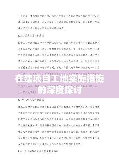 随着城市化进程的加速,各类建设项目如火如荼地展开,为了确保在建项目的顺利进行以及工人的安全健康,工地的落实措施显得尤为重要,本文将对在建项目工地的落实措施进行深入探讨。