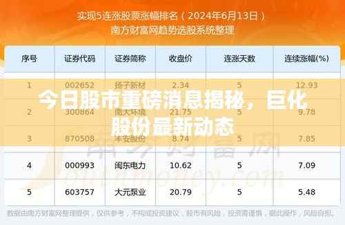 随着全球经济的日益发展,股市的动态变化成为了投资者关注的焦点,股市出现了一股新的动向,引发了广大投资者的关注,本文将为您解读今日股市巨化的最新消息。
