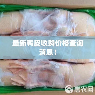 随着人们对于食品的需求日益增加,各种食材的价格也时常变动,鸭皮作为一种食材,其收购价格也成为了人们关注的焦点,本文将为您介绍有关鸭皮收购价格的最新消息及相关查询。