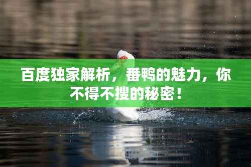 通过以上的介绍,相信大家对“百度一下番鸭”有了更加深入的了解,番鸭作为一种营养丰富、药用价值高的家禽,不仅美味可口,而且具有广泛的用途和巨大的市场前景,希望通过今天的介绍,能够让大家对番鸭有更深入的了解和认识。