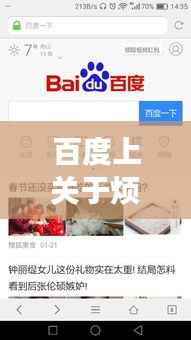 随着互联网的普及和搜索引擎的发展,我们每天都在使用各种搜索引擎来获取信息,百度作为中国最大的搜索引擎之一,已经成为我们生活中不可或缺的一部分,有时在搜索过程中,我们可能会遇到一些令人不悦的结果,百度一下烦的照片”,这类内容可能给我们带来一定的困扰和影响,本文将就此话题展开讨论,探究这一现象的背后原因及应对之策。