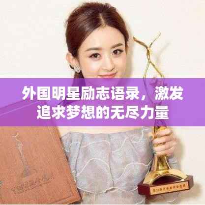 外国明星的励志语录充满了力量和鼓励,他们的励志语录激励我们在面对困难时不放弃,坚持梦想,付出努力,这些语录提醒我们,成功需要付出艰辛的努力和坚持不懈的精神,让我们从外国明星的励志语录中汲取力量,勇敢地追求我们的梦想,创造属于我们自己的辉煌。