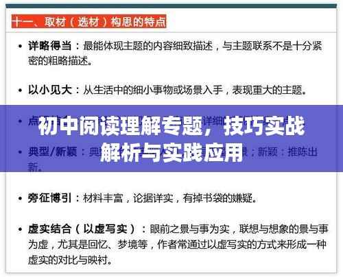 初中阶段的阅读理解能力是学生必须掌握的基本技能之一,随着课程内容的深入,阅读理解在学生的学习中占据了越来越重要的地位,本文将围绕“初中阅读理解专题”展开讨论,介绍相关技巧和实践方法。