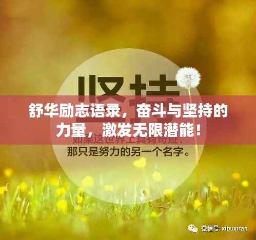 在这个充满挑战与机遇的时代,每个人都在寻找属于自己的力量源泉,舒华励志语录,正是这样一股激励人们勇往直前的力量,这些语录汇聚了智慧与勇气,为我们指明了方向,鼓舞我们不断奋斗,坚持不懈。