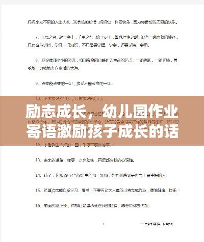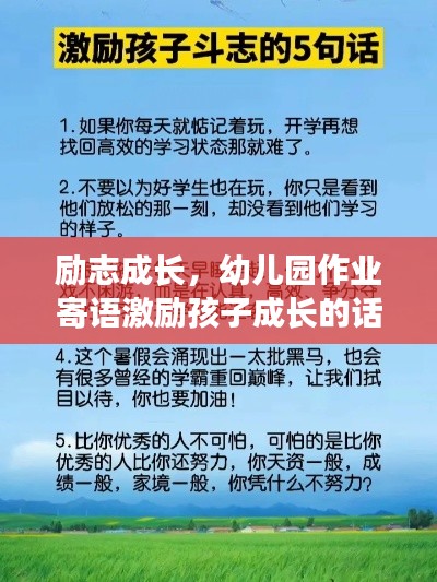 励志语录是激发孩子们潜能的重要工具,通过将这些积极向上的话语融入到幼儿园的作业中,可以帮助孩子们树立正确的人生观和价值观,培养他们的自信心和勇气,让我们共同为孩子们的未来努力,为他们播种希望,浇灌信心,让他们在成长的道路上勇往直前。