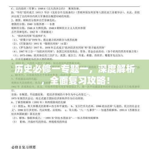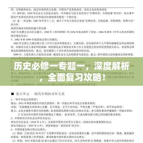历史必修一专题一复习是对中国古代历史的重要知识点进行系统的回顾和梳理,本专题涵盖了从远古时代到封建社会的政治、经济、文化等方面的内容,是历史学习的基础,通过本次复习,旨在帮助学生更好地理解和掌握历史知识,提高历史分析和解决问题的能力。