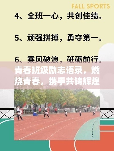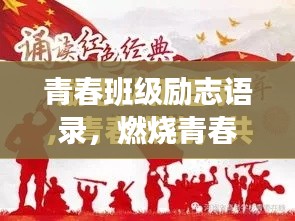 青春是一段充满热血与激情的岁月,班级是我们共同的家园,让我们携手共进,共同燃烧青春,共铸辉煌,在这美好的时光里,我们要珍惜每一刻,努力奋斗,不留遗憾,让我们一起追逐梦想,创造属于我们的传奇,班级青春励志语录不仅仅是激励我们的语句,更是我们共同的信念和追求,让我们一起努力,为了班级的荣誉,为了自己的梦想,勇往直前,无所畏惧。