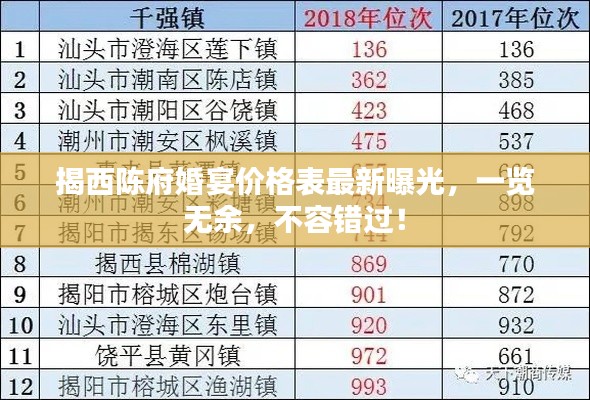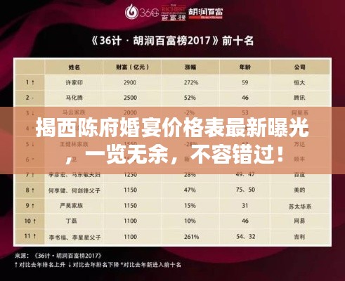 随着时代的发展,人们对婚宴的需求和追求也在不断变化,揭西陈府作为当地知名的婚宴场所,一直备受关注,本文将为您详细介绍揭西陈府婚宴价格表最新的情况,带您了解这里的婚宴档次与价格。