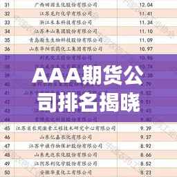 随着金融市场的快速发展,期货行业也日益繁荣,作为投资者,选择一个优秀的期货公司至关重要,本文将为您介绍AAA期货公司的排名,带您了解行业领军者的力量。