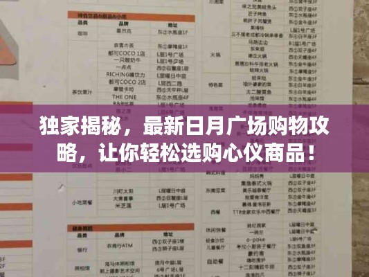 日月广场作为城市的繁华商业中心,拥有众多优质商铺和丰富的商品种类,通过本文提供的购买攻略,希望能帮助您在日月广场购物过程中更加顺利,享受到更多的优惠和便利,祝您购物愉快!