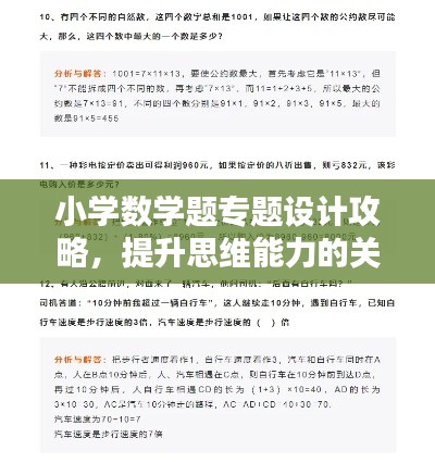 小学数学教学是学生数学学习的启蒙阶段,其重要性不言而喻,为了使学生更好地掌握数学知识,提高数学能力,本文将探讨小学数学题专题教学设计,旨在通过专题设计,帮助学生深入理解数学知识点,培养逻辑思维和问题解决能力。