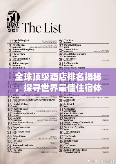 随着全球化的步伐加快,酒店业也日新月异,特别是那些顶级酒店,以其豪华、舒适、高科技和独特的设计赢得了全球旅行者的青睐,本文将为您揭示当前世界酒店排名,带您领略全球顶级住宿体验。