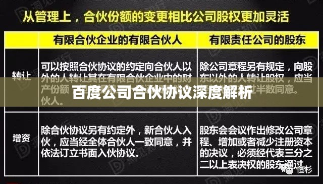 随着互联网的快速发展,百度公司作为国内领先的搜索引擎和技术公司,经常与其他企业达成合作,在这样的背景下,公司合伙协议显得尤为重要,该协议旨在明确双方在合作过程中的权益、责任和义务,确保合作顺利进行。