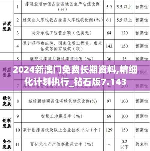 随着澳门特区政府的不断努力和发展,2024年新澳门迎来了一系列全新的政策和福利,其中包括免费长期资料的提供。这些资料旨在增强民众的信息获取渠道,提升澳门居民的生活质量和幸福感。在这份《2024新澳门免费长期资料,精细化计划执行_钻石版7.143》中,我们将详细介绍政策内容及执行计划。