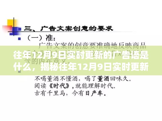 随着市场营销的快速发展,广告语的更新速度也日益加快,每年的特定日期,如重大节日或特殊纪念日,都可能成为广告商们争相更新的热点时刻,本文将聚焦于往年12月9日的实时更新广告语,探讨其背后的创意策略与变迁,揭示广告业界的创新动态。