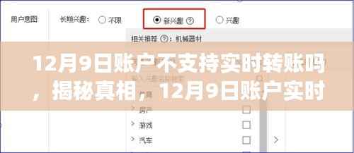 随着科技的飞速发展,实时转账已成为人们日常生活中不可或缺的一部分,近日有传闻称在特定日期如12月9日,部分账户可能不支持实时转账功能,这是否属实?背后又隐藏着怎样的原因?本文将为您深入剖析这一话题,探寻背后的真相。
