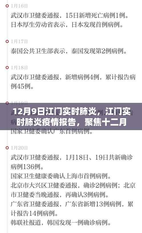 随着冬季的到来,江门市的新型冠状病毒肺炎防控工作面临新的挑战,本文将重点关注十二月九日江门实时肺炎的最新动态,包括疫情数据、防控措施、公众反应及建议等多个方面,以期为广大市民和关注者提供全面、准确的信息。