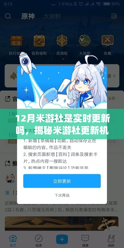 随着科技的快速发展和移动互联网的普及,越来越多的人开始关注各类社交媒体平台的更新动态,米游社作为一个专注于游戏资讯分享与交流的社区平台,其更新频率和内容质量备受用户关注,时至年末十二月,不少玩家对于米游社是否实时更新产生了浓厚的兴趣,本文将深入探讨米游社的更新机制,帮助大家更好地了解并实时掌握社区动态。