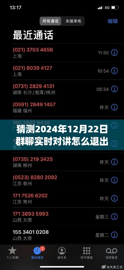 本文围绕“猜测2024年12月22日群聊实时对讲怎么退出”这一主题进行了深入探讨,通过对当前社交软件和移动互联网发展趋势的分析,我们猜测了未来群聊实时对讲功能的退出方式,我们还提出了在退出群聊实时对讲功能时如何保持优雅和礼貌的建议,希望本文能为大家在实际操作中提供一些参考和帮助。