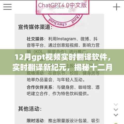 随着全球化的不断推进,语言交流的重要性愈发凸显,在这个背景下,视频内容的实时翻译成为了促进跨文化交流的关键技术之一,而在十二月,一款名为GPT的视频实时翻译软件以其革命性的进展,引领了行业的新潮流,本文将深入探讨这款软件的独特之处、功能特点、技术优势以及未来展望。