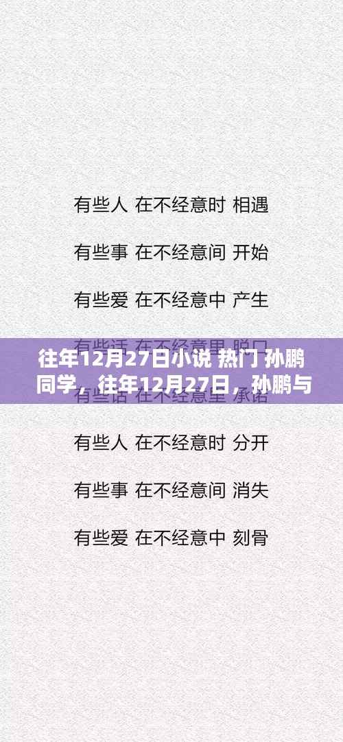 在一个寒冷的冬日,时间回溯到往年12月27日,我们聚焦于一位名叫孙鹏的年轻人的故事,这一天,孙鹏与他热爱小说的同学们聚在一起,共同探索小说的世界,分享热门小说的魅力,让我们跟随孙鹏的脚步,一起走进那个充满热血青春和文学梦想的世界。