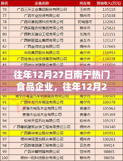 每年的12月27日,对于南宁众多食品企业来说,都是值得纪念的日子,这一天,不仅标志着圣诞节的临近,更是南宁食品行业繁荣发展的见证,本文将聚焦于往年这一天南宁的热门食品企业,探讨其背后的成功故事,展望未来发展的新篇章。