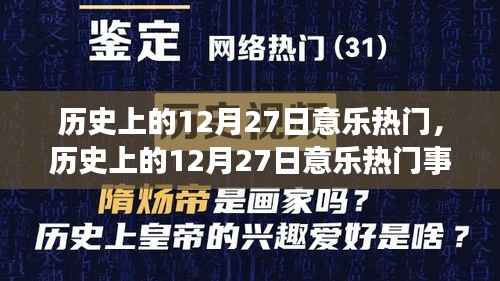 历史上的每一个12月27日都充满了意乐热门事件与人物的辉煌时刻,从音乐、艺术到娱乐产业,再到其他领域的重要事件,这一天见证了无数传奇的诞生和突破,这些人物和事件不仅为我们带来了无尽的欢乐和感动,也为世界历史留下了深刻的印记,我们回顾这些历史时刻和人物,旨在铭记过去、展望未来,继续为世界的进步和发展贡献力量。