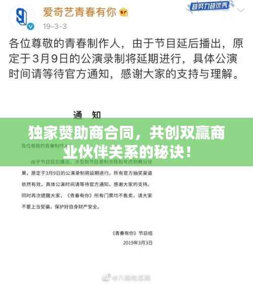 在商业领域,独家赞助商合同是一种重要的商业合作形式,它为企业间建立长期稳定的伙伴关系提供了坚实的基础,本文将从多个角度探讨独家赞助商合同的重要性、合同内容要点、签订合同的注意事项以及如何确保合同的有效执行,以期为企业间签订此类合同提供参考。