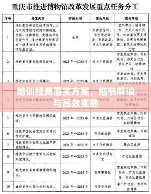 在当前社会发展新形势下,各类培训活动对于提升个人素质、推动企业进步具有重要意义,为了确保培训活动的顺利进行,培训经费的落实成为了一项至关重要的任务,本文将详细介绍一个全面的培训经费落实方案,以确保培训活动的正常开展和取得实效。