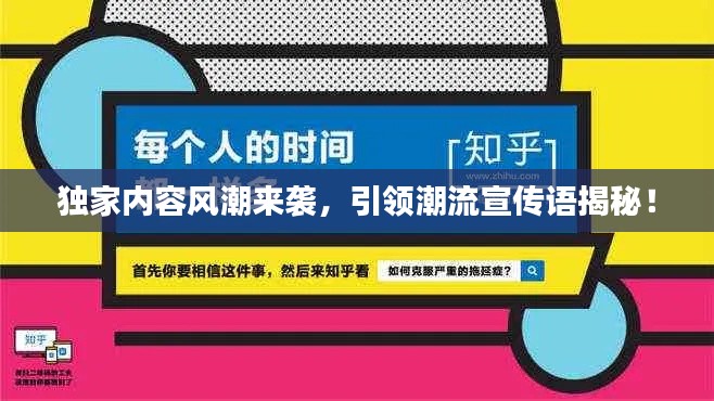 在这个信息爆炸的时代,内容的独特性和新鲜度成为了吸引大众目光的关键,为了吸引更多的读者,各大媒体和平台都在努力挖掘独家内容,力图通过独特的信息和精彩的报道赢得市场份额,一个吸引人的独家内容宣传语至关重要。