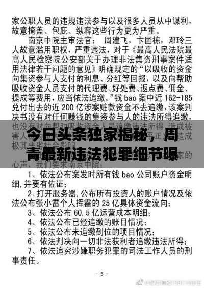 关于今日头条上关于周青的最新消息引起了广泛关注,本文将围绕这一主题展开,揭示背后可能的违法犯罪细节。