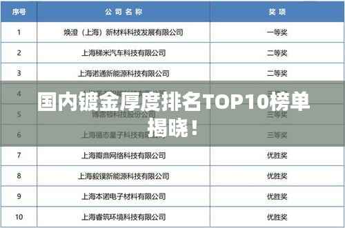 在当今工业制造领域,镀金技术已成为一种重要的表面处理技术,广泛应用于电子、五金、首饰等行业,镀金不仅能提高产品的耐腐蚀性和耐磨性,还能提升其外观美感,本文将介绍国内镀金厚度排名前十名,以供参考。