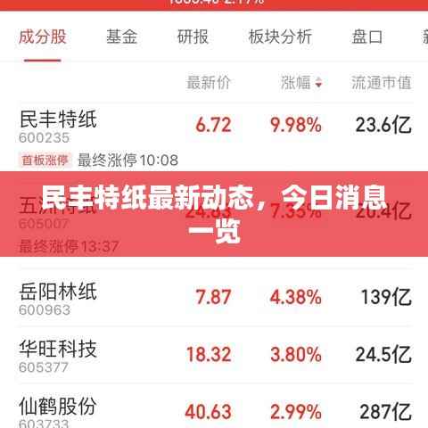 随着科技的不断进步和市场的日新月异,造纸行业也在经历着前所未有的变革,作为造纸行业的一员,民丰特纸始终站在行业前沿,不断引领行业创新与发展,本文将为大家带来民丰特纸的最新消息,探讨其在市场、技术、产品等方面的新动态。