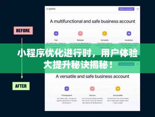 不断优化小程序是提高用户体验、提升服务价值和商业价值的关键,开发者们需要从界面、加载速度、性能和功能等方面进行优化,通过数据驱动、用户反馈、A/B测试和技术更新等方法,持续改进小程序,只有持续优化,才能让小程序在激烈的市场竞争中脱颖而出,赢得用户的喜爱。