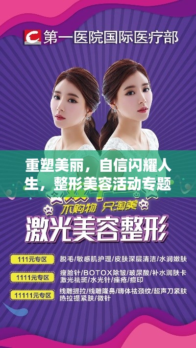 本文约1905字左右,详细介绍了整形美容活动专题的内容、意义、参与方式及注意事项,旨在为广大爱美人士提供一个了解整形美容、提升美丽的机会,让我们一起走进美丽的新世界,重塑美丽,自信人生!