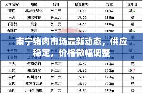 南宁市的猪肉市场供应稳定,价格微幅波动,政府相关部门积极采取措施,加强监管,保障市民的消费需求,市民在购买猪肉时,应关注政府发布的相关信息,到正规渠道购买,预计在未来一段时间内,南宁市的猪肉市场将继续保持稳定的发展态势。